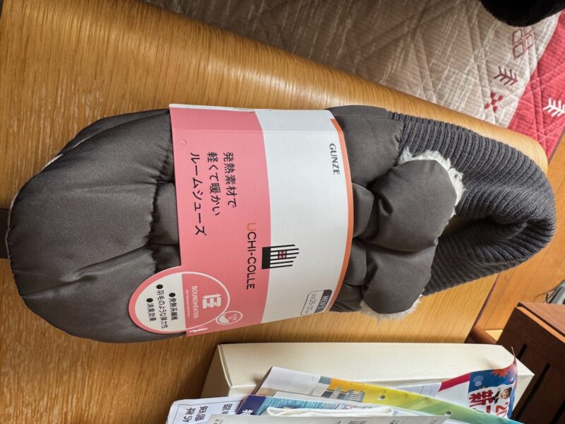 今まで、神さんから結婚記念日にプレゼントを貰った事はなかったのですが、今回は、プレゼント?として、室内シューズを貰いました。少し前に同様の室内シューズが破れて捨てました。現在は、スリッパを使用してます。暖かくて良いですが、次の冬ま置いておく事にしました。
