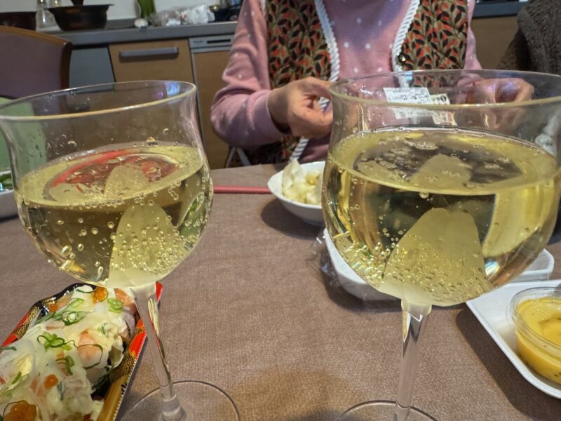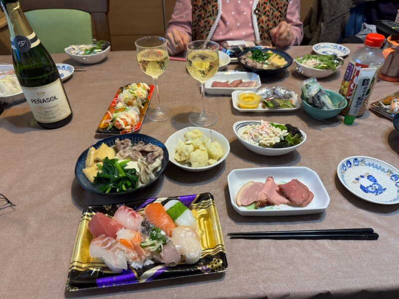 晩飯も少し豪華?にしました。寿司をとオードブルなどを購入して、スパークリングワインを飲みました。まっ、結婚記念日なので・・・。