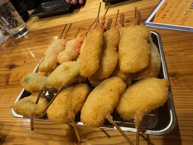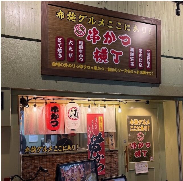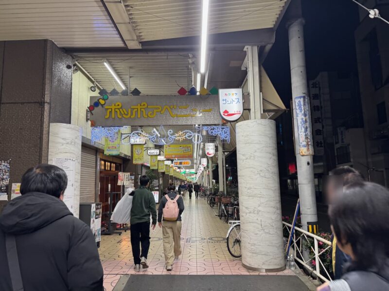 2次会へ向けて、永和から布施まで歩きました。近鉄とJRの駅が隣接してます。ポッポアベニューを通過しました。昔、昔、暗黒さんと行ったバーの前を通過しました。シャンデリアで装飾されて場所も有りました。そして、布施駅に到着して、いつもの繁華街へ向かいます。今回は、入口近くの串かつ横丁に入りました。私が近くで・・・と言ったのかも分かりません。
