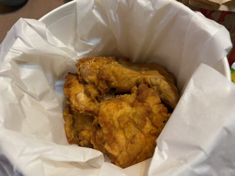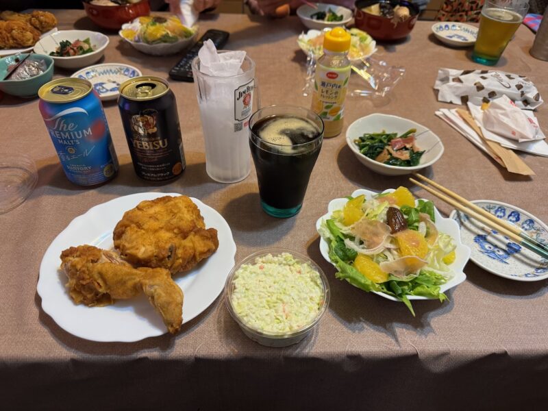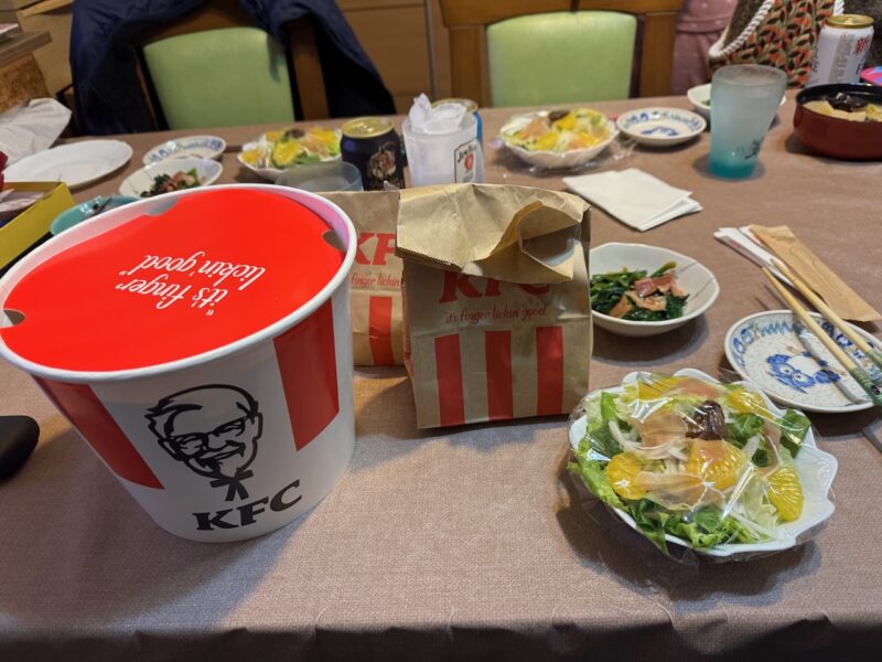 初日(2月21日(土))は、この飲み会を中心に過ごしました。バイクに乗ろうとも少し考えてのですが、三連休なので、バイクに乗ることが可能だと思ってました。二日目(2月22日(日))は、例に寄って、軽い二日酔いでした。そして、歩き過ぎで足が痛かったです。無理してはイケ無いと思い、バイクは止めました。そして、三日目(2月23日(月;祝日;天皇誕生日))は、バイクに乗ると決めて、神(;妻)さんに昼過ぎに言うと息子を連れて、ニトリモールへ連れてって欲しいと言われました。息子が、東京へ結婚式に行くので、正装が必要な様でした。以前の服は、太って着れない様でした。天気も良く、暖かだったのに本当に残念でした。息子、神さんが、服を選んでいる間、フードコートに座って1時間以上、待ってました。見える所にケンタッキーがあり、凄く食べたくなりました。神さんにお願いして、、8ピースのセットを買って貰いました。セットは、コースローをサイズアップして貰いました。晩飯は、ケンタッキーが中心になりました。