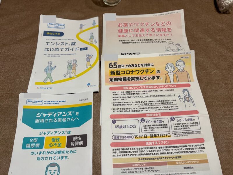 いつもの様に3ヶ月(90日)分の薬を貰いました。どうも薬も値上がりした様に思いました。2万円を超えてます。この薬を朝;15.5錠、夜;2錠飲んでます。当然、泌尿科の薬も含まれてます。そして、今回、薬局で薬の副作用などの注意書きされた冊子を定期検診などの広告と一緒に貰いました。