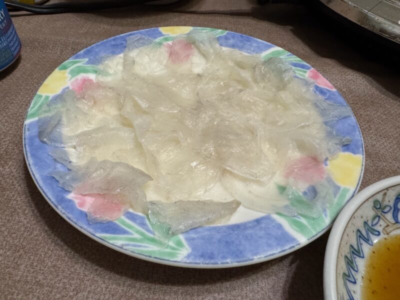 毎年、下関から取寄せてるとらフグをいただきました。てっちりにテッサです。テッサは、細ネギを巻きながら食べました。あっ、鰭酒を呑むのを忘れました。