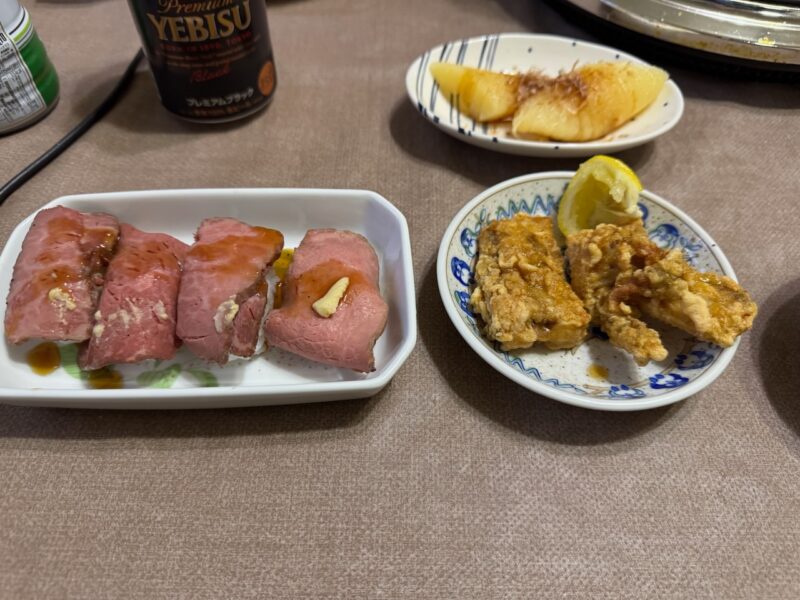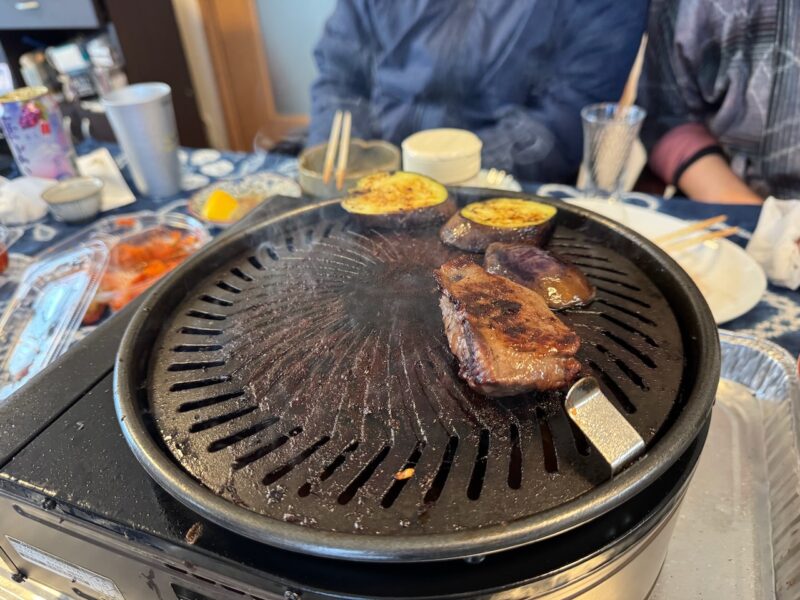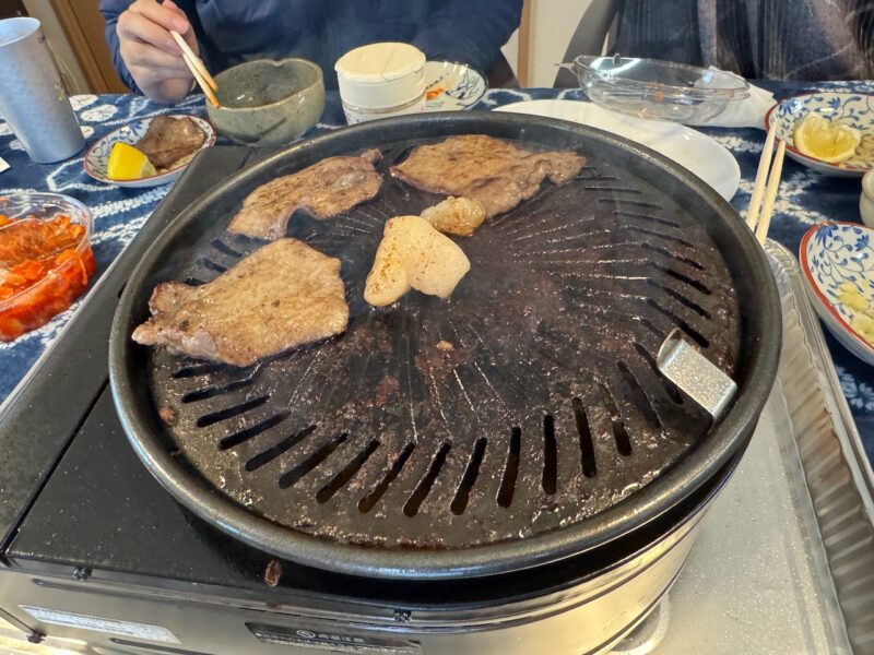 昼前に義弟に迎えに来て貰って、神(;妻)さんと次男坊が、買物に行きました。12時30分から開始するとLINEに連絡が入りました。そして、神さんの実家(義弟の家)へ行きました。神さんの薮入り(実家に戻る行事)です。美味しい微炭酸の神蔵を飲みました。ビールも飲んでキムチも食べて焼肉パーティーの始まりです。タンから始めて、焼肉、ウインナーなどと食べ進めます。あっ、肉の全体の写真を撮るのを忘れました。今回も相当な肉を準備してくれてました。でも、歳のせいか?余り食べれませんでした。あんなに好きで沢山食べてたのに・・・。老化は、こんな時にも感じさせられます。
