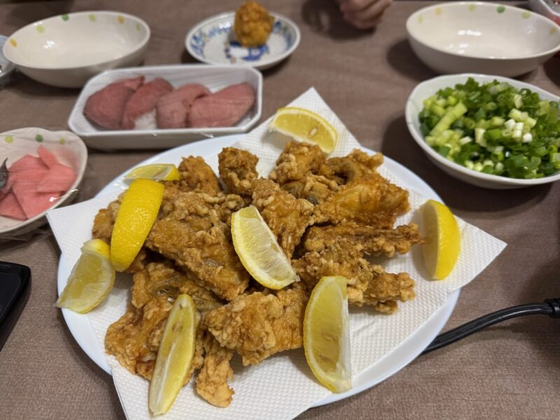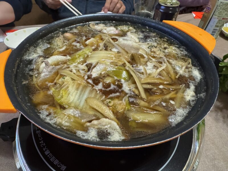 義弟を自宅に招きました。お正月に食べたフグのアラを唐揚げにしてくれました。メインは、鴨鍋です。コンビーフの寿司、数の子も付きました。黒ビールからスパークリングワインを飲みました。義弟は、いも焼酎の赤兎馬を持って来てくれました。