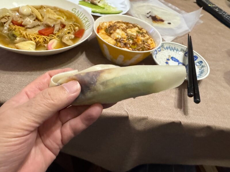晩飯に何が良いか?と聞かれたので、中華と答えました。皿うどんに麻婆豆腐と私の好きなモノです。そして。北京ダックです。久し振りに食べた気がしました。薄い皮(カオヤーピン)に包んで食べます。凄く旨かったです。