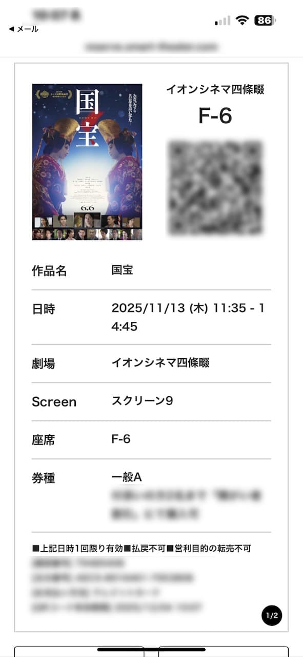 皆さんから、今更と言われそうですが、映画の「国宝」を神(;妻)さんと先週の木曜日(2025年11月13日)、観に行きました。今年の6月6日に公開された作品の様でした。しかし、映画はアマゾンプライム中心に観てたので、最新の映画を視野に入って無かったです。