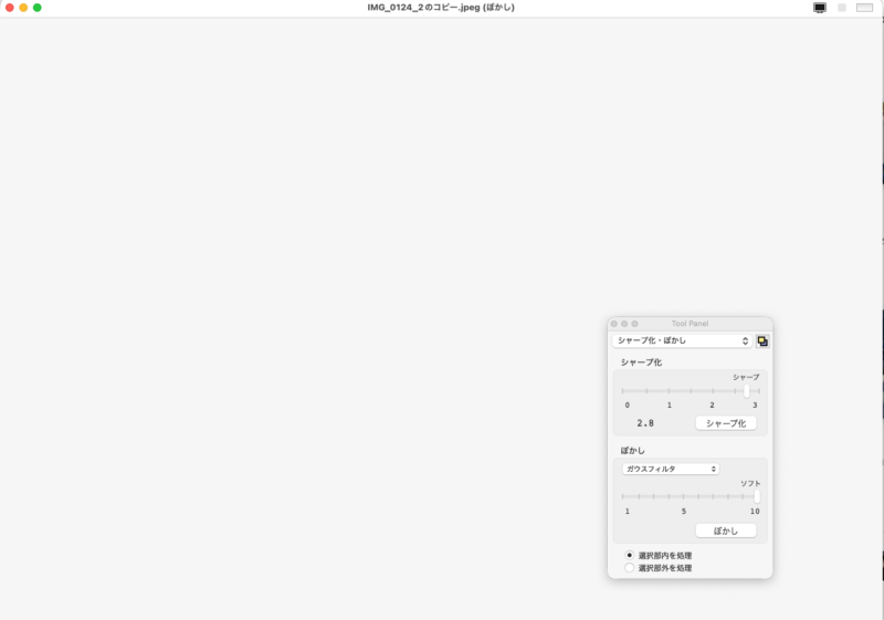 有名な無料の画像編集アプリです。長年、使用して来ました。写真の加工は、明るさの調整、ボカシと必要な事は、簡単に対応できます。これで、領域を決めて、ボカシを入れると真っ白な画面になります。色々と設定を変更してみましたが、無理でした。他の写真加工アプリを検討しましたが、有料で、使用し難いです。