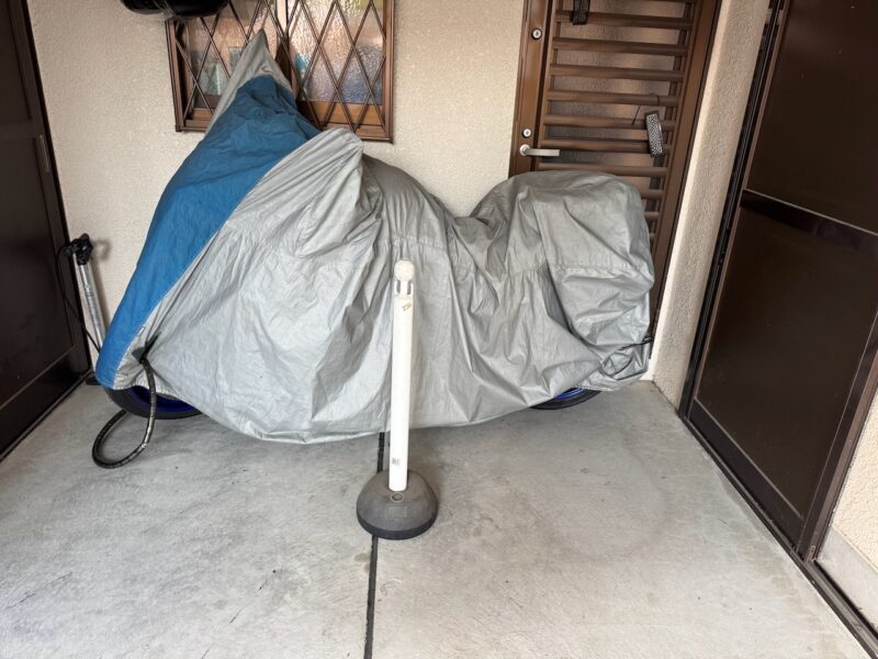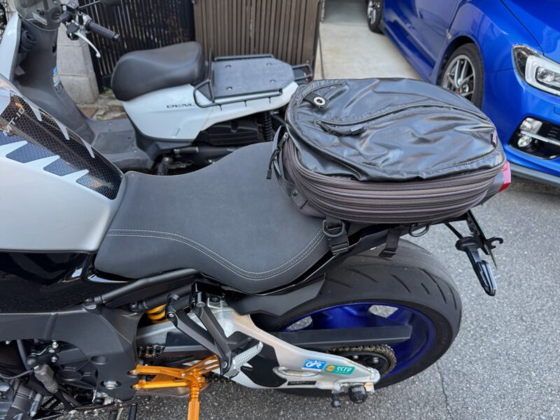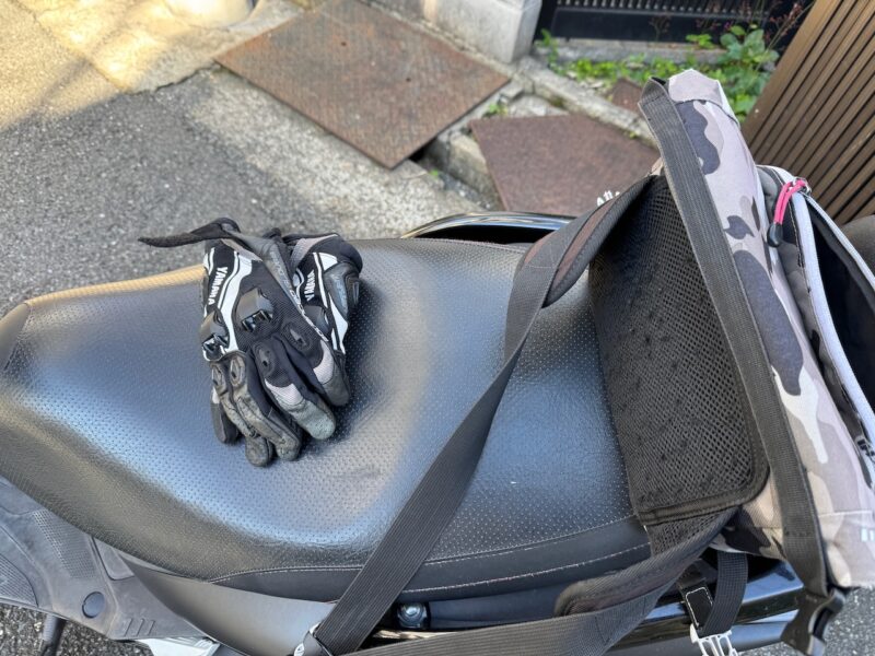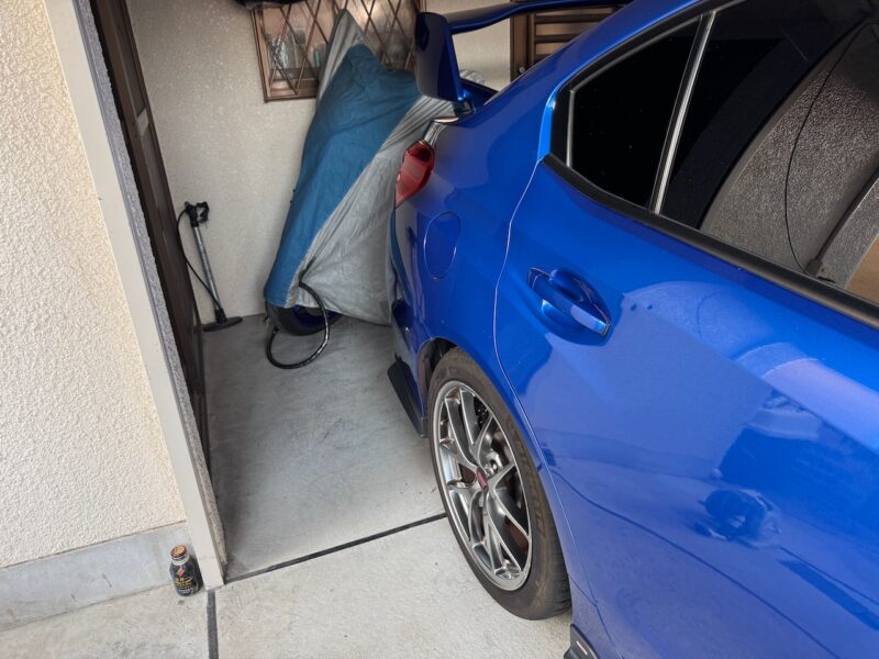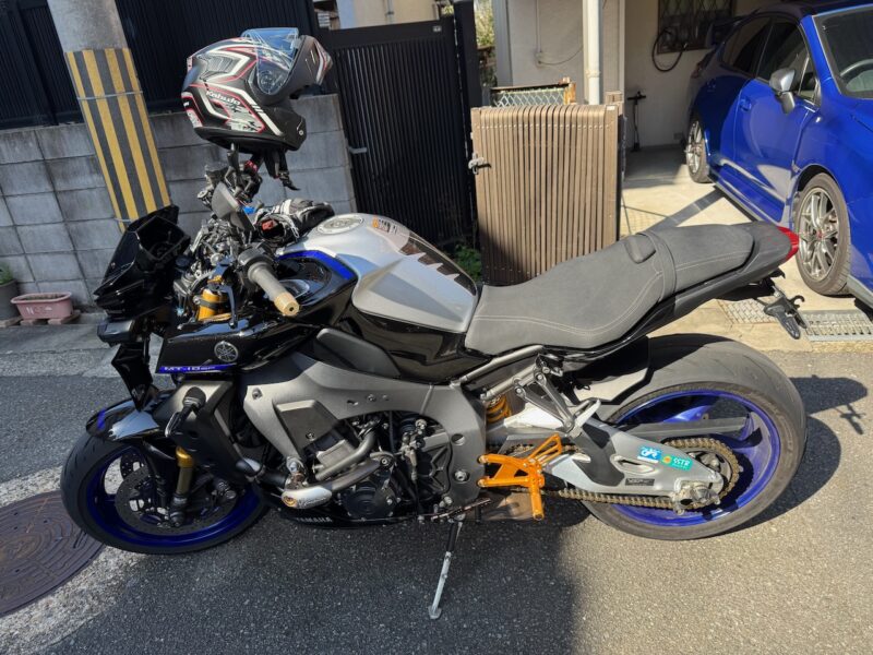 タイヤが、今回、市街地ばかりの走行だったので、中央が擦り減ってました。最後にシートバックを取り付けました。これは、生椎茸の購入の為です。そして、バイクを停める駐車場の奥が汚れていたので、掃き掃除をしました。そして、バイクの相棒のMT-10SPを直して、シートを掛けました。その後、車の相棒の WRX STI を直して相棒達は駐車場に収まりました。