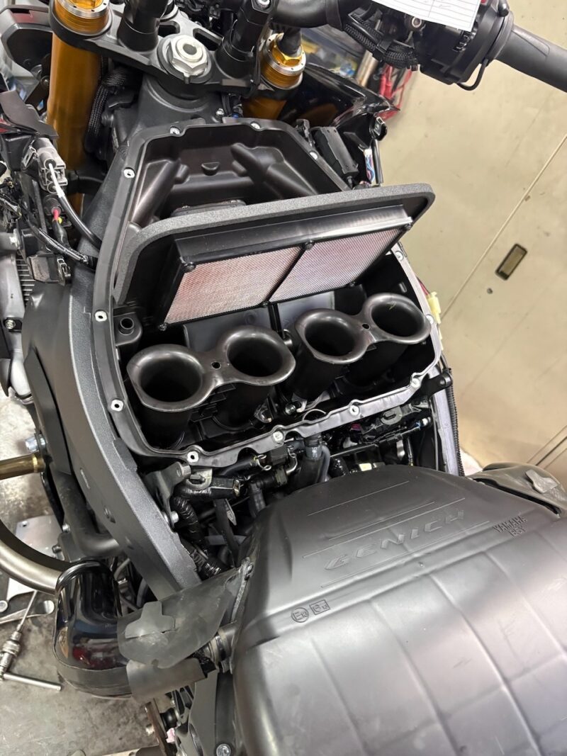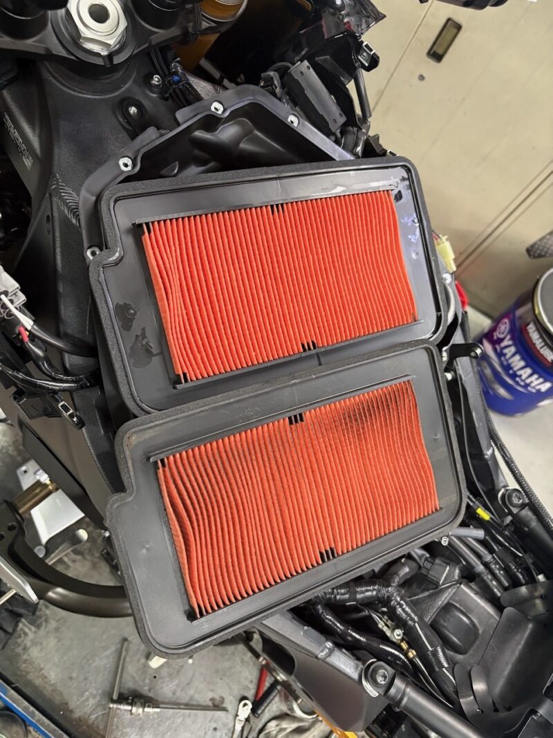 W田店長に特別に整備中の写真を送って貰いました。ファインネル?、エアークリーナーなどエンジンの内部・・・中々見る事が出来ません。本当にありがとうございます。