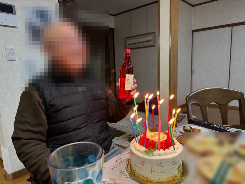 今週の日曜日(2026年2月8日)にホームパッティが行われました。2連チャンの宴会となりました。この日は、快気祝いです。以前骨折して、入院して、ボルトを入れた方が、ボルトも取れたので、快気祝いをしようとの事になりました。雪等の天候不良もありました。持ち寄った料理とスーパーで買ったお惣菜などを持ち寄っての宴会です。此処のお宅でで、2回記憶を無くしてます。飲み過ぎに注意しながら17時から21時頃まで楽しく宴会をしました。快気祝いのケーキを購入しました。そして、私から赤の寿ボトルの焼酎を贈りました。