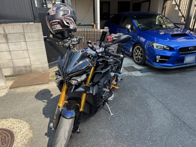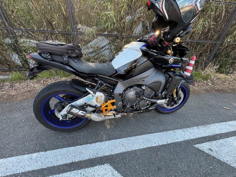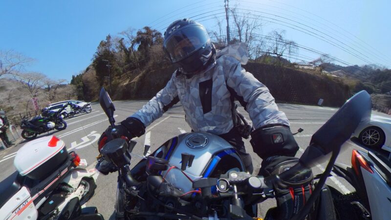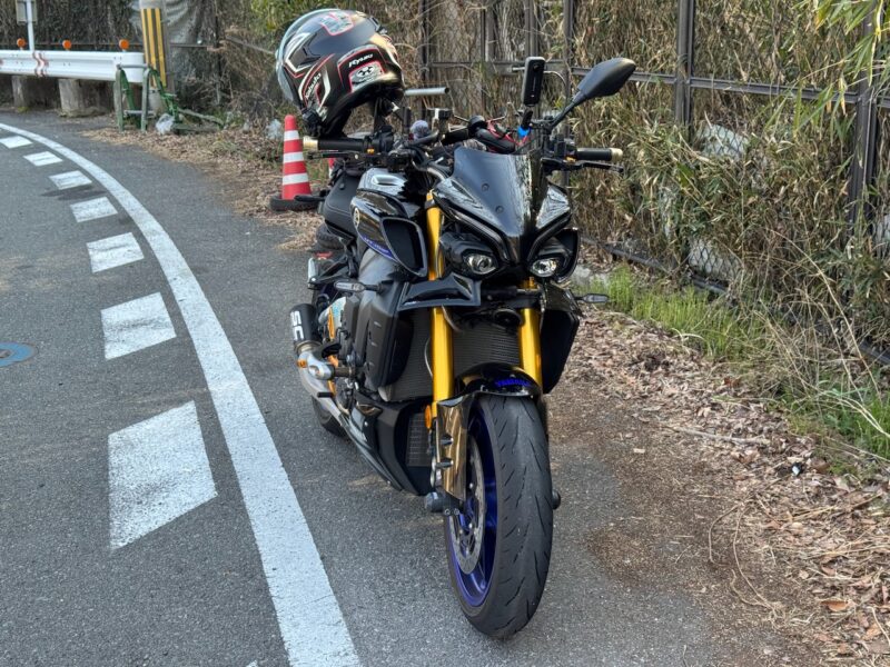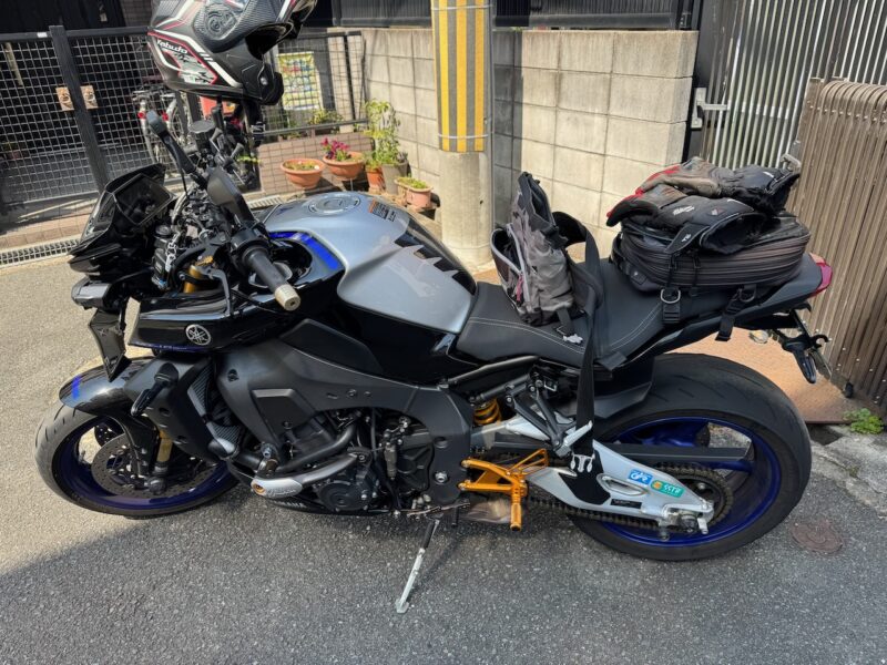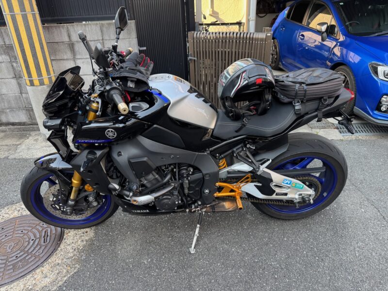 バイクの相棒のヤマハ MT-10SP を10時過ぎに駐車場より出し、相棒達の2ショットです。服装は、まだ、寒いと思い、上下冬仕様です。厚底ブーツを拭いて、綺麗にしました。踵の部分に少しほつれが出て来ました。いつもの様にカメラ(Insta360 ONE X2)を装着しました。