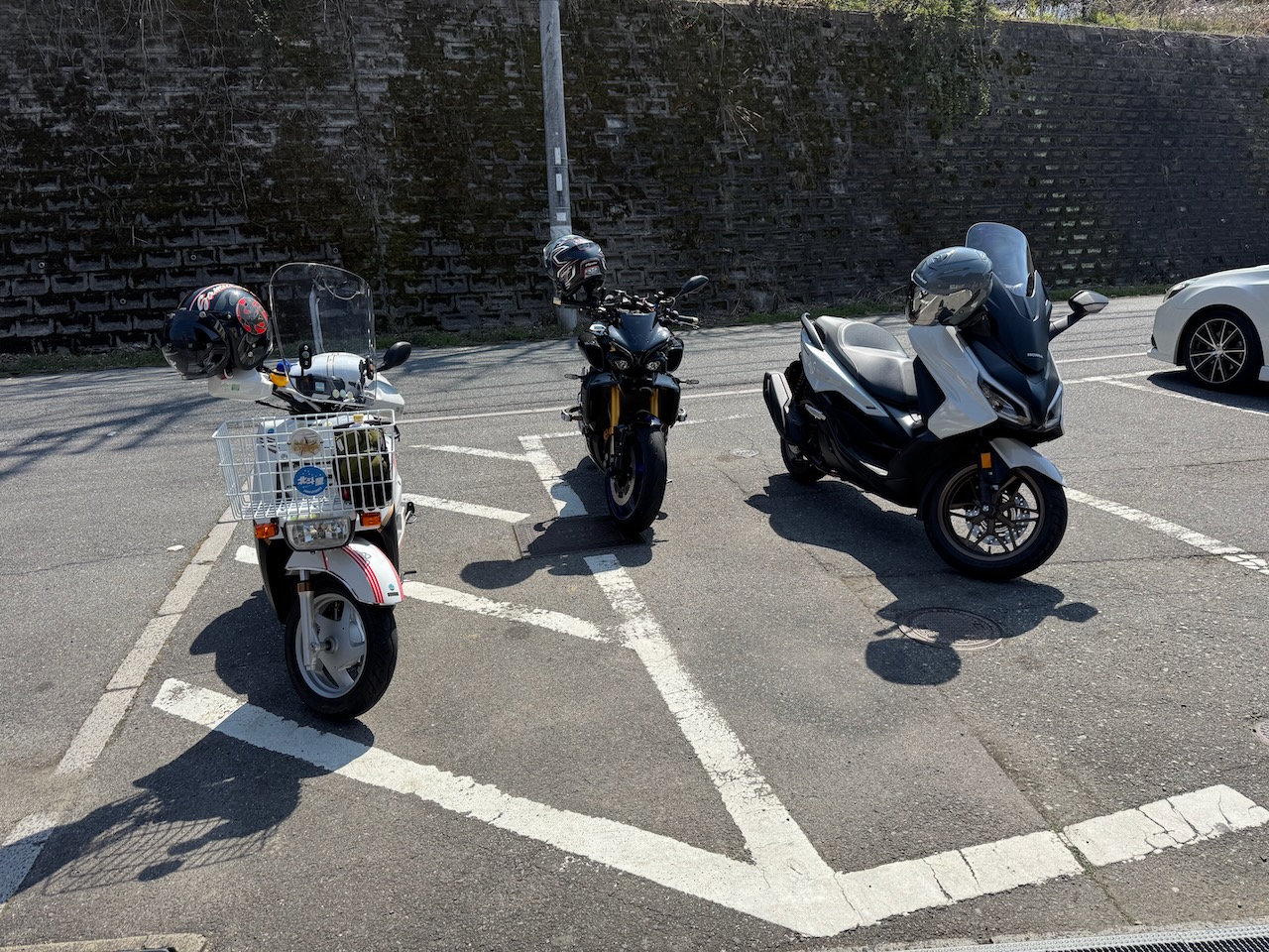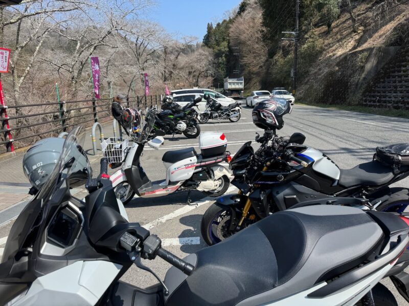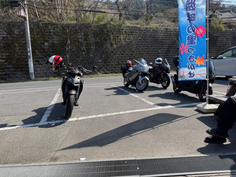 久々の湖畔の里の中央の駐車場です。知合いの方は、スクーターの方のみでした。余りお話しをしない静かな方です。他にもバイクが複数、止まってました。お腹が少し空いたので、草餅を食べる事にしました。今回、2つ購入しました。でも焼いたモノでは有りません。屋台?はありましたが、焼いてませんでした。次回は、桜祭に焼くと言ってました。草餅を食べながらバイク見学です。湖畔の里 つきがせ の幟が新しく設置されてました。梅、桜、紅葉の絵柄がこの場所の特徴を上手く表現してます。14時前に常連のK1200の方が来られました。その後、マラーレンさんがヤマハのスクーターでご一緒に黒のCBR650さんが来られました。そして、グレーのドカさんが到着しました。トイレに行き、定点撮影をしました。桜も間も無く開花すると思います。これで、バイクの日常が戻ったと思いました。