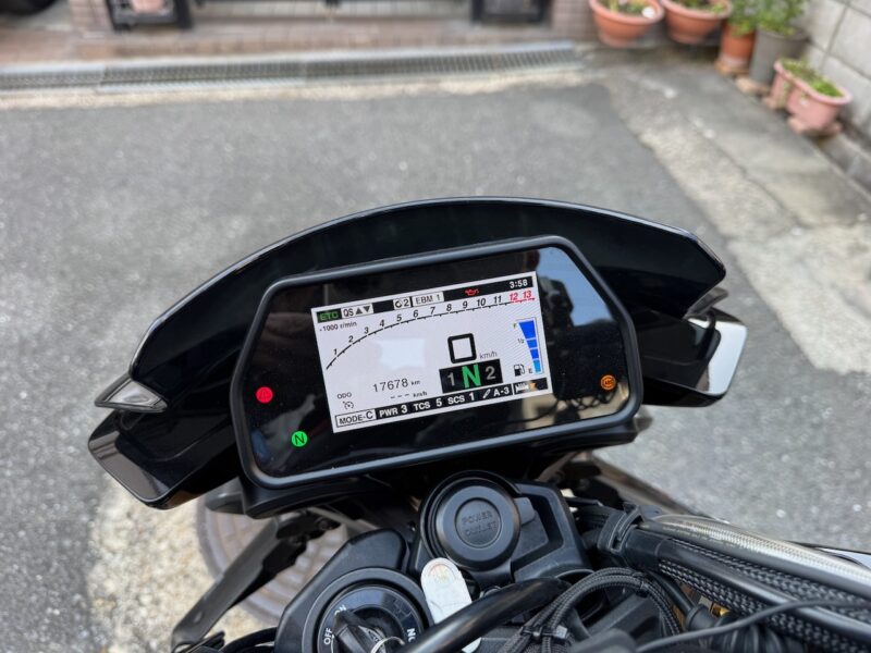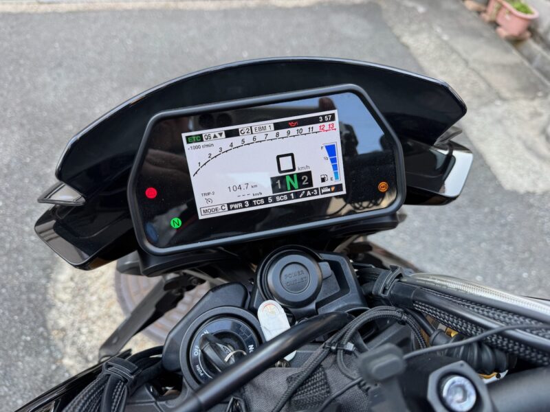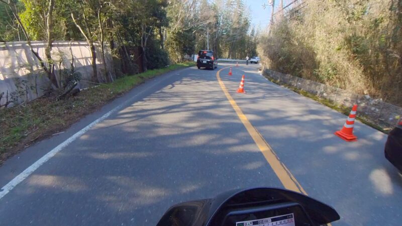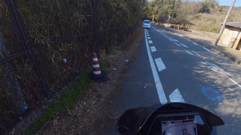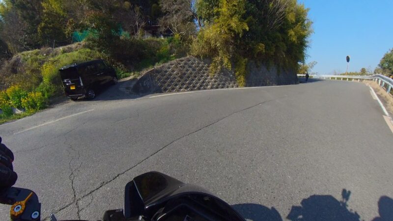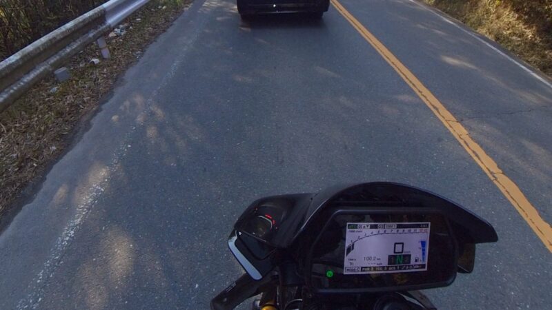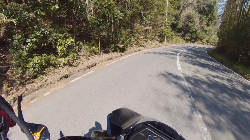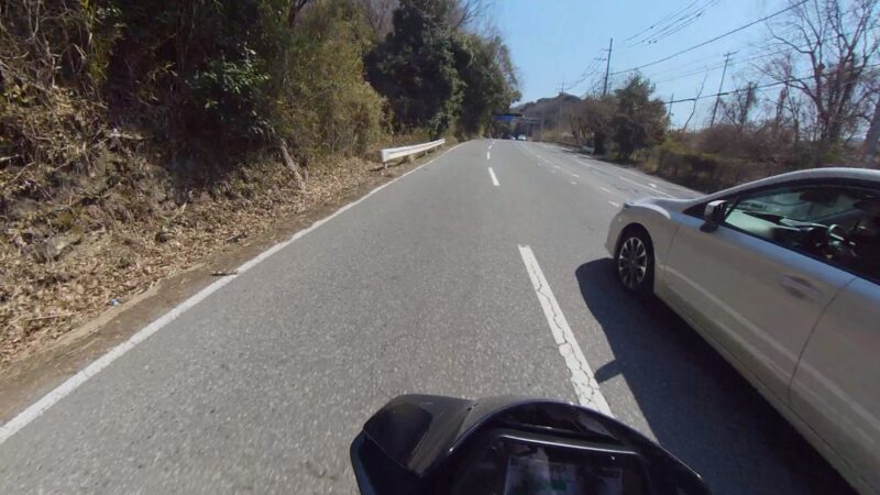 14:20 に湖畔の里を出ました。K4は、道が結構、割れてます。大型車両の走行も多いからだと思います。柳生の交差点までスムーズでした。柳生街道の直線では、1万回転以上回しました。信号のある、交差点では、すり抜けをしました。池の横でも追越しを行いました。そして、峠が終わりました。
