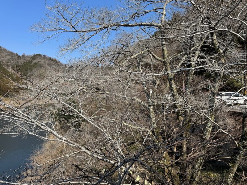 裏道から柳生街道へ入ります。柳生街道に入って、直ぐに車を抜きました。峠のくねくね道は楽しいです。柳生で、大型ダンプの後に付きました。柳生では、さくら祭を行ってる様です。K4 に入って、大型ダンプを抜きました。道の3分の2を占領してます。名張川手前の交差点に出て来ました。そして、橋を渡って、周りを見ると梅は、もう終わってる感じがしました。湖畔の里の駐車場を確認すると警備員の姿は有りませんでした。駐車場の中央に停車させました。久々の湖畔の里前の駐車場に停めました。12:40 に到着です。