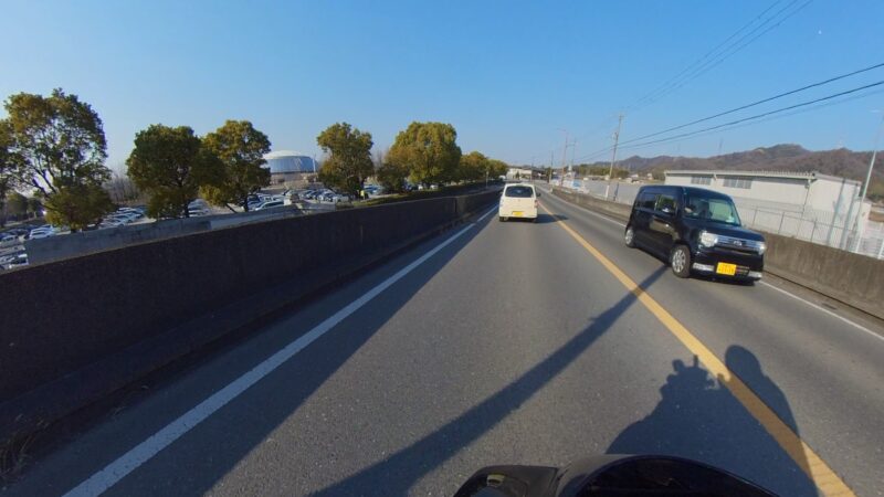 GSを出て、混んでいるF736はすり抜けをして、裏道へ入りました。ところが、JRの高架下が警察に閉鎖されていて、また、F736へ戻されました。また、事故か?と思いました。三連休の中日で、普段運転しない方も多く運転してます。気をつけないとイケないと思いました。そして、磐船街道を走行中にカメラが停止してるのに気がつきました。直ぐに稼働させましたが、入口は過ぎてました。裏R163の直線は、前に車が居たので、大人しく走行しました。R163は、比較的空いてました。山田川の高架の交差点でも、木津川中央体育館前でも先頭に走行しました。