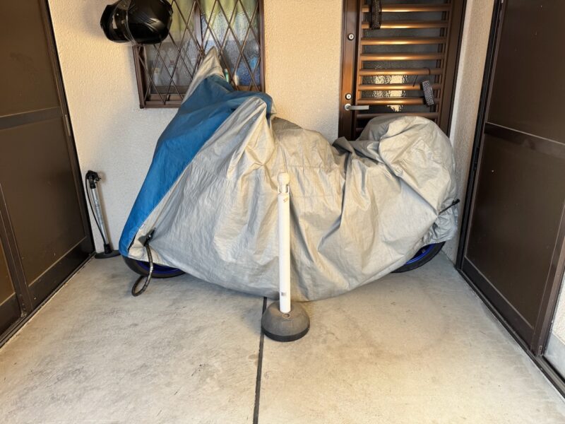 自宅に16時に到着です。いつもの104.7kmです。ODOは、17,678kmです。ホンマに最近、走らなくなりました。タイヤは、完全にスリップラインが出てます。しかし、サイドは、バリ残りです。タイヤ交換、もう直ぐです。17時にシートを掛けてバイクを直しました。