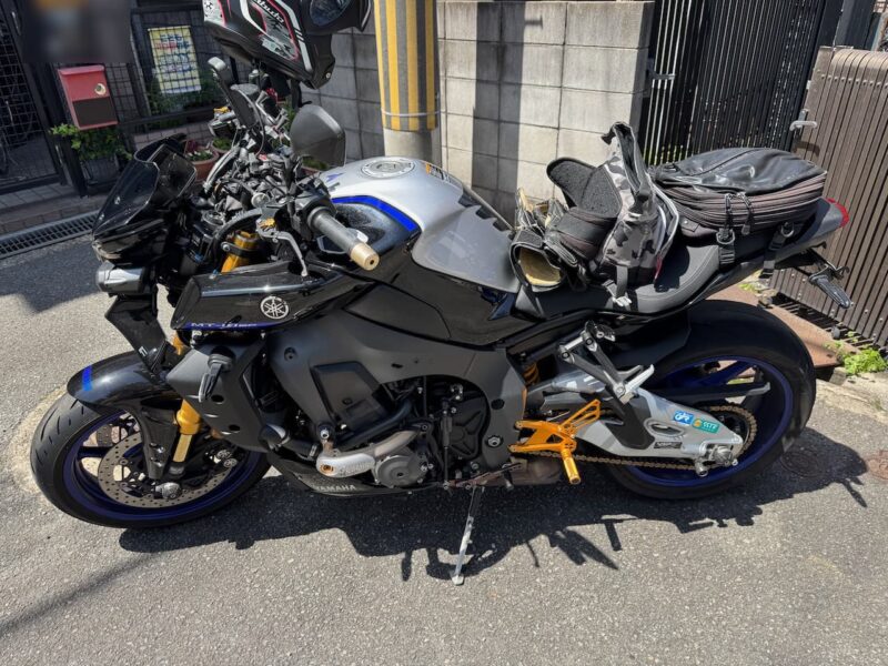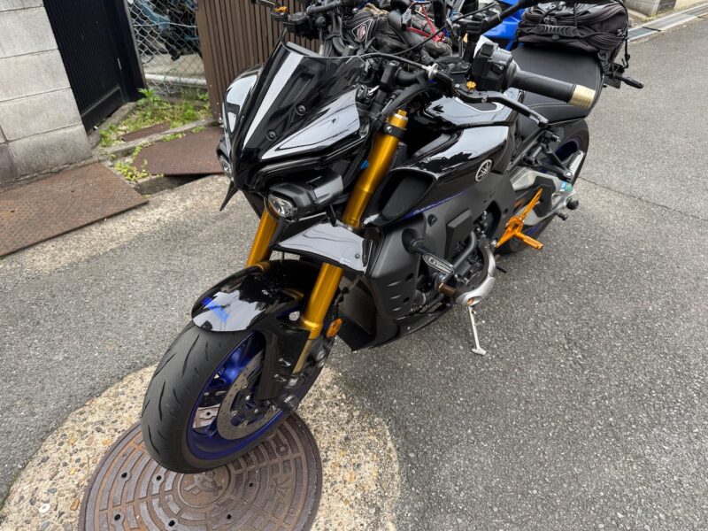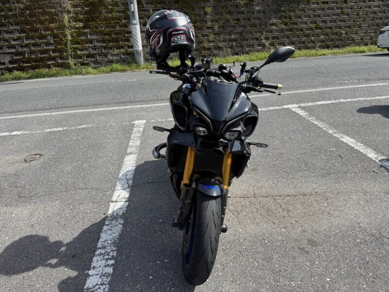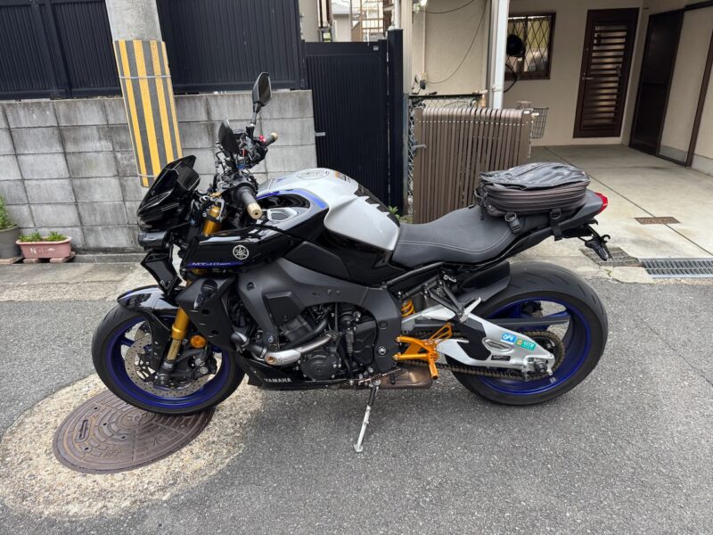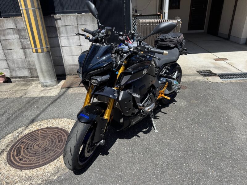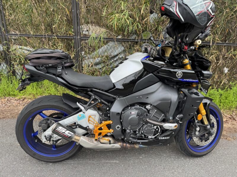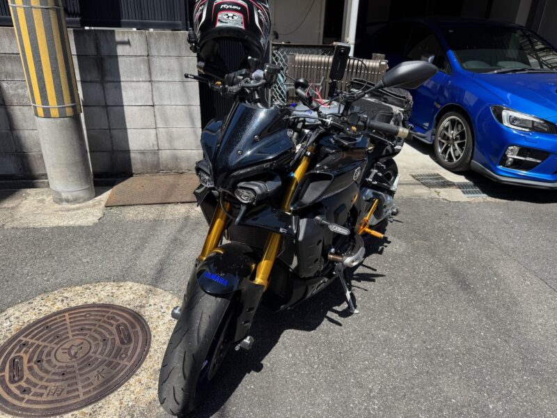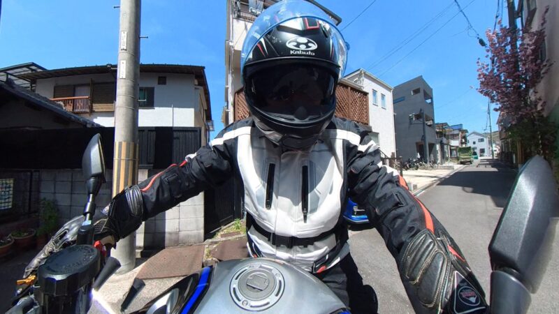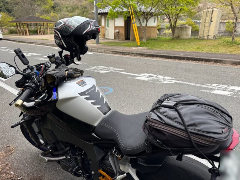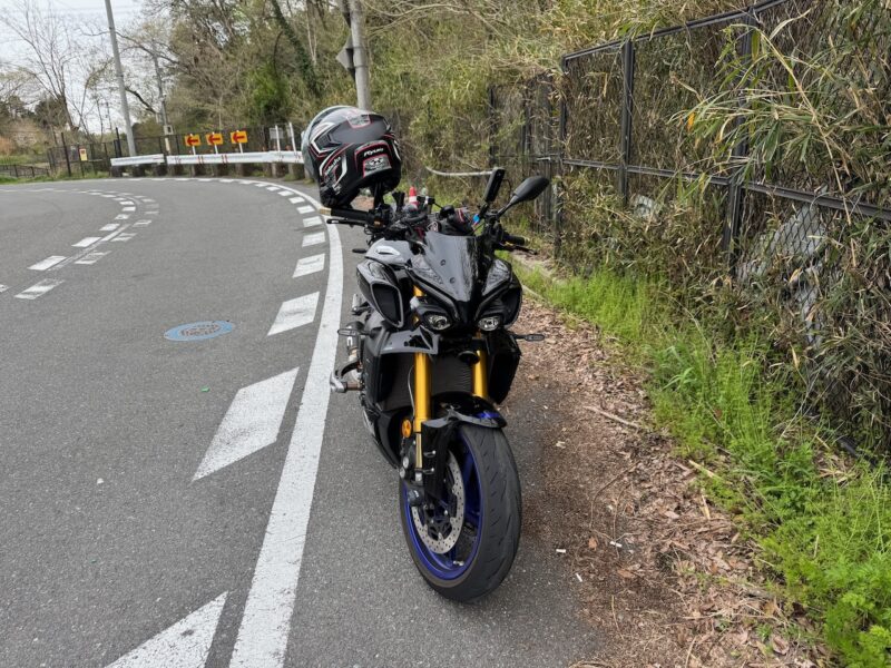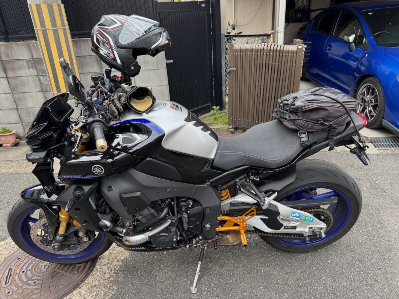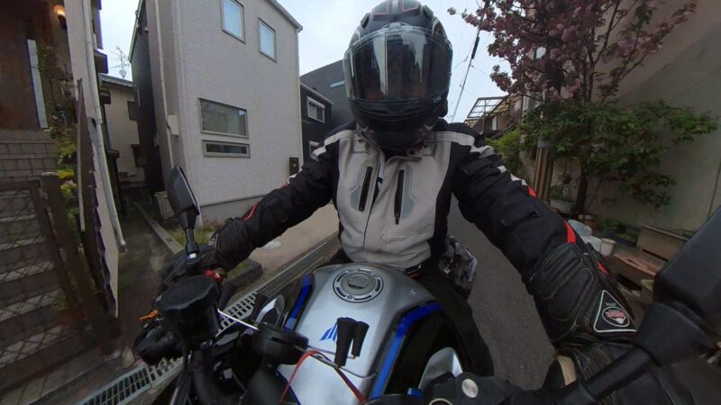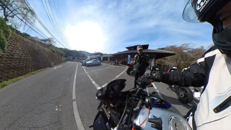 神(;妻)さんは、二胡の練習に京都へ行ってました。一日フリーです。でも、ゆっくりし過ぎて、12時にバイクの相棒のヤマハ MT-10SP を駐車場から出しました。車の相棒の スバル WRX STI とのツーショットです。かなり暖かだったので服装は迷いましたが、下は、アンダーには夏用のタイツを履きました。その上は、冬用のパンツを履きました。上は、Tシャツの上にトレーナーを着て、3シーズンのジャケットを防風防滴のインナーを付けて着ました。そして、車載カメラ(Insta360 ONE X2)を設置して、12:40 に出発しました。