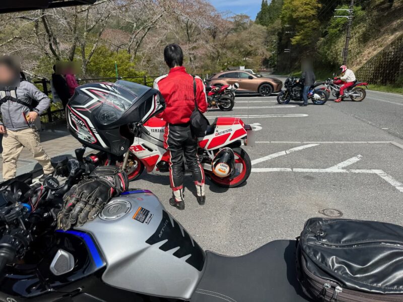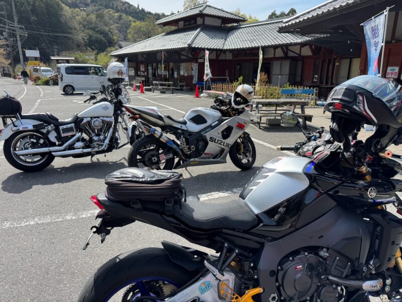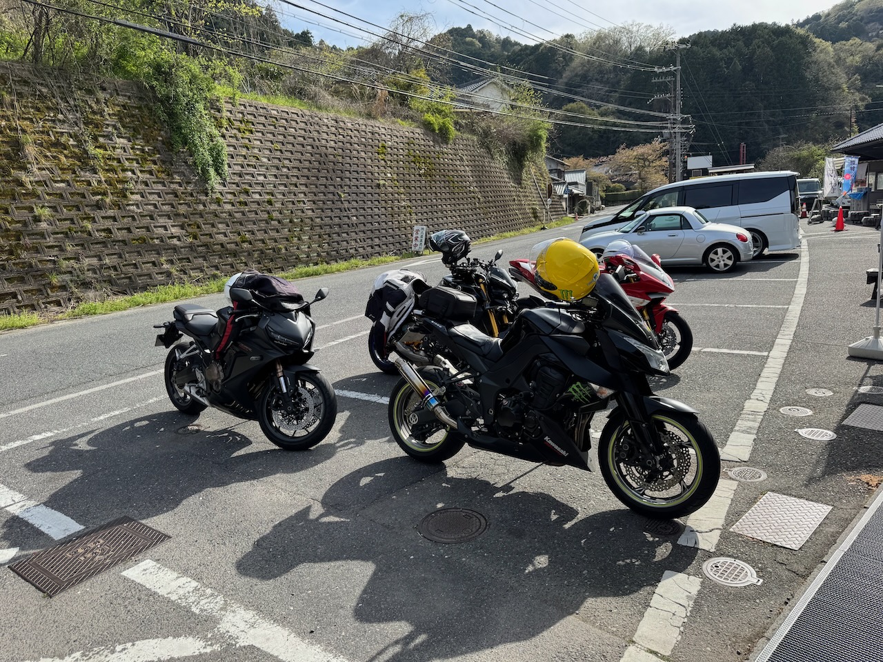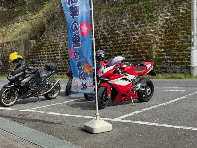 到着時は、駐車場はガラガラでした。ほぼ同タイミングで奥の駐車場に しんMT-10さんが友人と到着しました。急いで販売店へ行きました。途中に女性のバイクらしき2台が止まってました。売店には、昼食として、草餅を購入しに行ったのですが、バラが有りませんでした。でも、お土産として最高の物が有りました。最後に紹介します。14:20 にコペン(白緑CBR)さんが、到着しました。その後、バイク見学をしてました。昼食として、カロリーメイトと缶コーヒーを飲みました。その後、Z1000さん、黒CBR650さん、MVアグスタF4さんが到着しました。そして、梅香乃へ行ってた、Vストローム(旧;グレGS)さんが最後に到着しました。トイレに行って、定点撮影をしました。桜は、葉桜が出て終了状態です。桜まつりは、1週間前でした。最後に昼組の方の写真を撮って15時半で帰る事にしました。