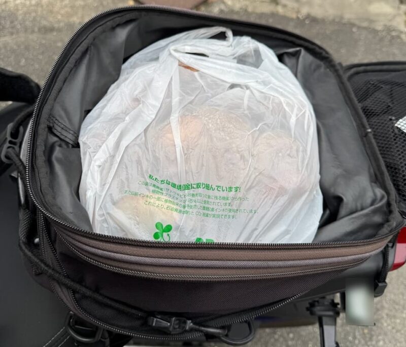 自宅に17時過ぎに到着しました。ODO 17,784km です。今回は、お土産があります。久し振りの生椎茸です。バイクは、18時過ぎにシートを被して直しました。ヘルメットを久し振りに乾燥機に設置しました。生椎茸は、当日、翌日(4月13日(月))に椎茸ステーキとして食卓に登場しました。