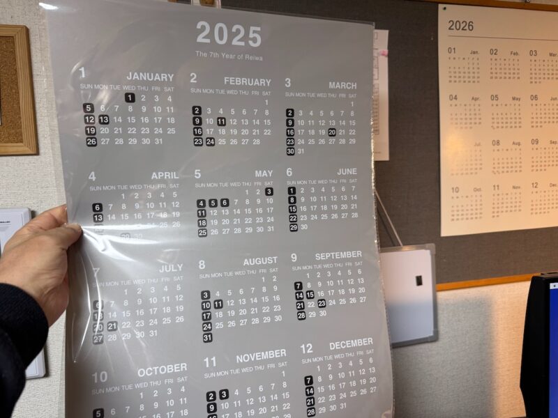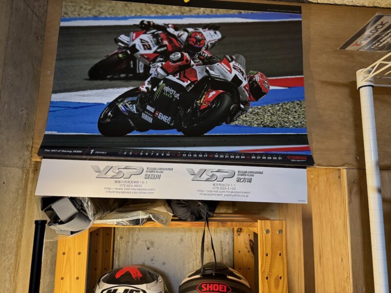 毎年、当然、カレンダーを交換してます。先ずは、年間カレンダーです。例年、セリアのモノを使用してたのですが、行く機会が無く、今回は、ダイソーのモノにしました。白地で見やすいと思います。ビニールカバーに入ってないので、直接、ピンで止めました。そして、YSP寝屋川さんから頂いたヤマハのレーシングカレンダーです。モトGPが多数有ります。もうSSには、乗れませんが、気持ちはSS乗りで居たいと思います。相棒のMT-10SPで頑張ります。