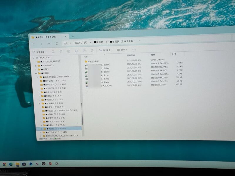毎年使用してるので、これに関しては、何とか使用出来てます。最新Verには、流行りのAI機能もある様ですが、特に必要ないと考えてます。裏面のデザインの作成と住所録のメンテナンスです。裏面のデザインは、各種の無料のコンテンツから選択して、加工して使用してます。後、最近の年賀状のマイブームの神(;妻)さんとの写真もコンテンツの一つとして考えてます。今年は、一緒に旅行に行ってません。でも、万博に行ったので、それを選びました。そして、万博関連のコンテンツも付加しました。そして、印刷をしました。今年は、134枚となりました。凄く減って来てます。過去、最大で300枚弱出してました。2年連続で年賀状が来なかったら、名簿から削除する様にしてます。今回は、印刷ミスは、有りませんでした。