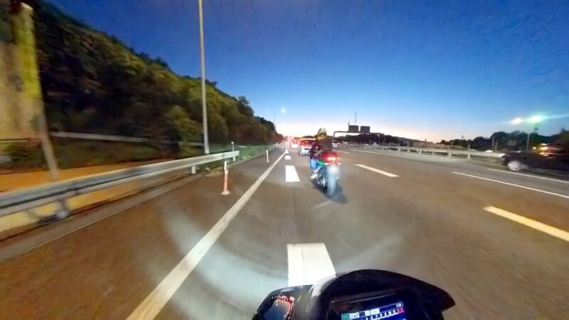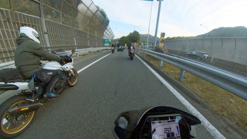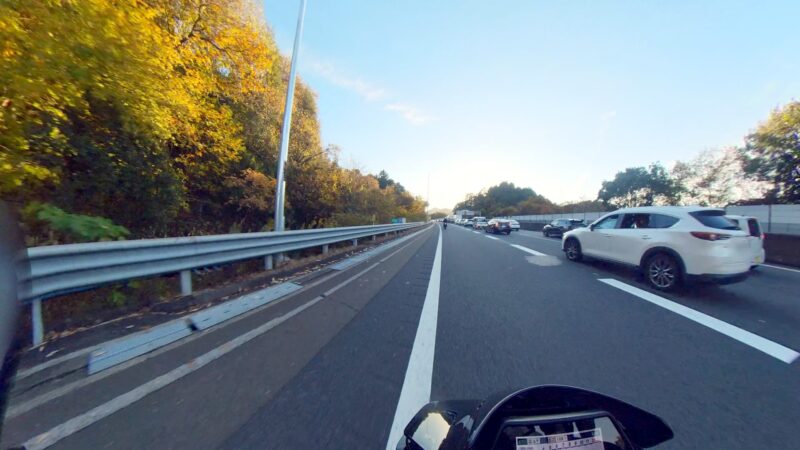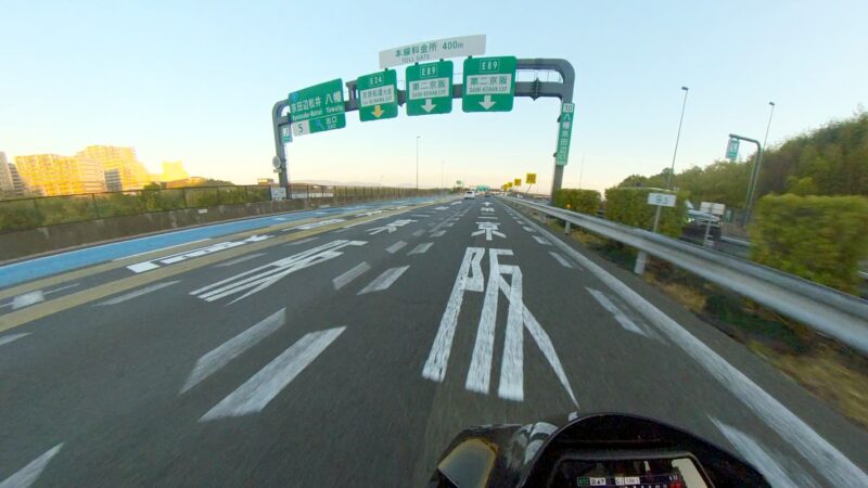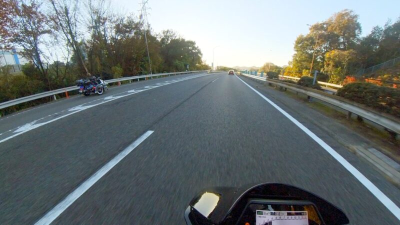 タケ(カワサキ)ちゃんと一緒に帰りました。京滋バイバスから第二京阪のルートです。タケちゃんが先行して走行しました。トンネルで、白赤ストライプFZ1 FAZERさんを追い抜きました。中央走り中に黒XSR900さん(元TRX850)を追い抜きました。第二京阪に入る前にタケちゃんを見失いました。第二京阪で追越し車線を走行してる時に走行車線をゆっくりと走行して待っていてくれた様です。カメラは、見てました。京田辺の料金所を通過しました。その後、直ぐにTさんが追越し車線から抜いて行きました。タケちゃんも後から追いかけて来て、Tさんに挨拶をしてました。交野北ICで下りました。向井田2の交差点の前で、タケちゃんにに挨拶をして別れました。向井田2の交差点を右折して、自宅へ向かいます。