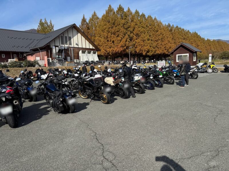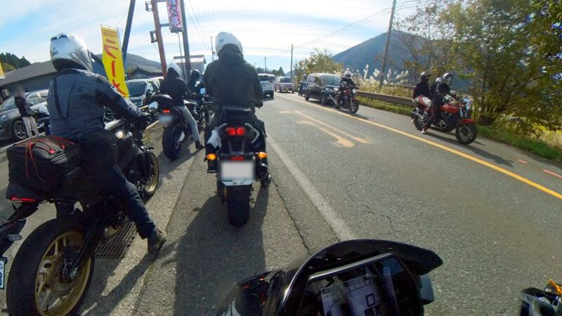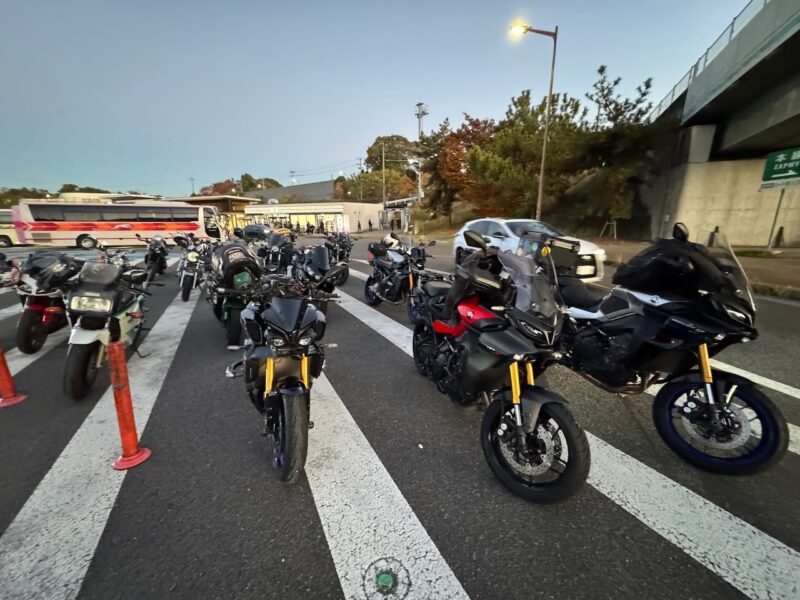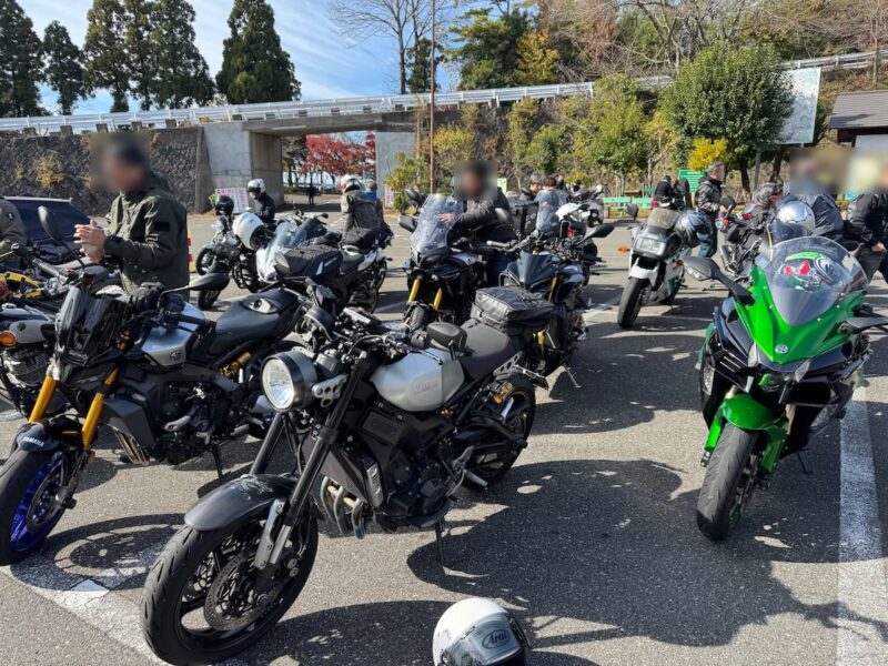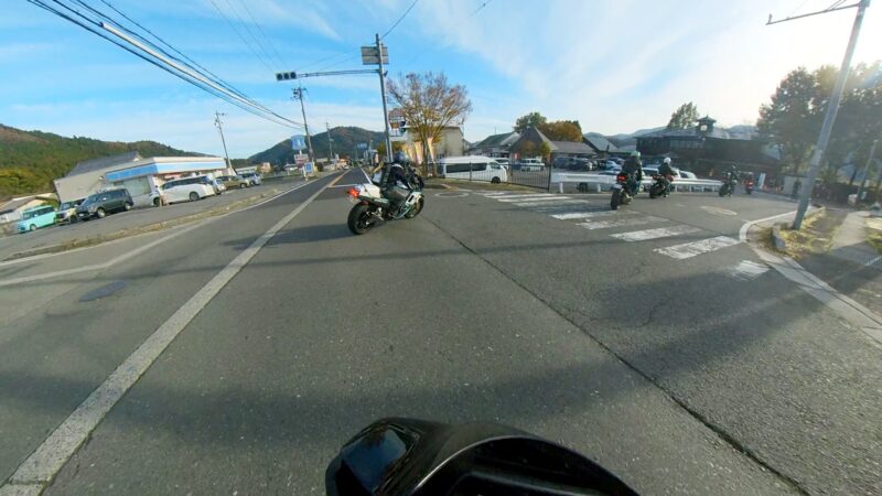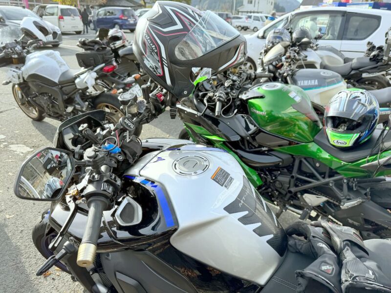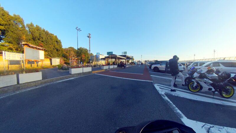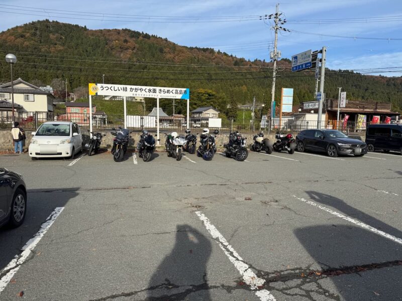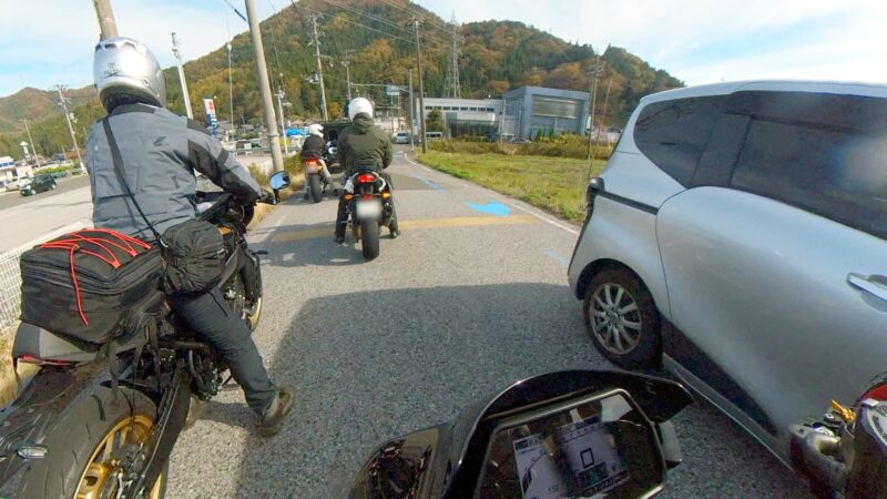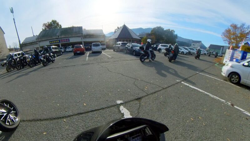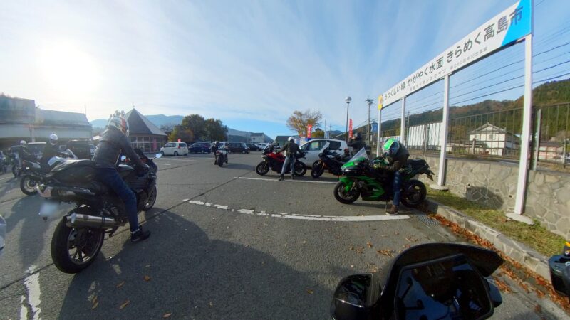 此処では、基本的にトイレ休憩だけです。日曜朝市などをしてましたが、スルーしました。バイク乗りの特徴か?バラけて停車してます。私は、整列して、タケちゃんのカワサキH2SXの隣に停車しました。15分ほどで出発しました。