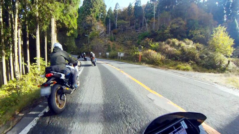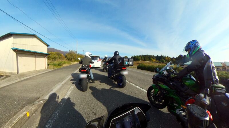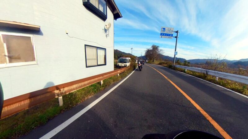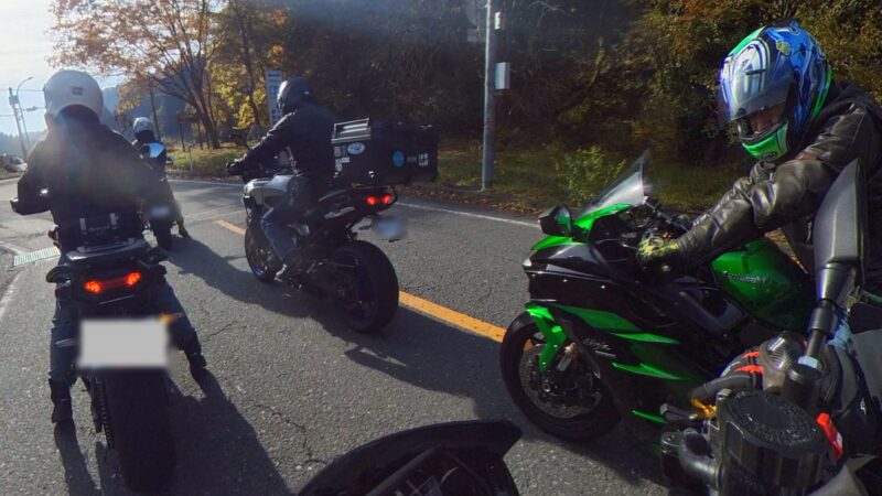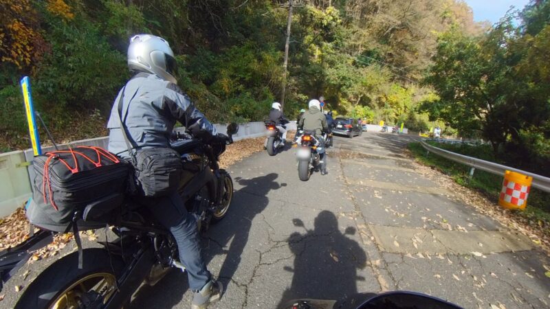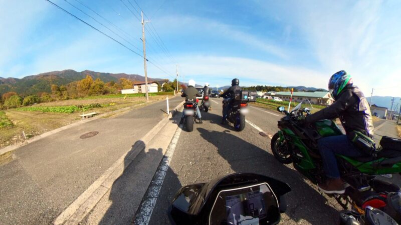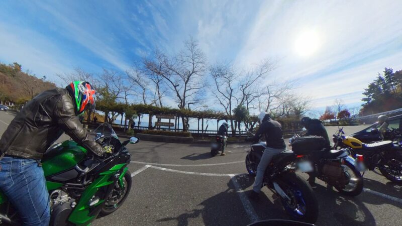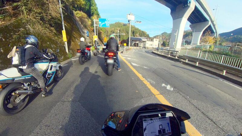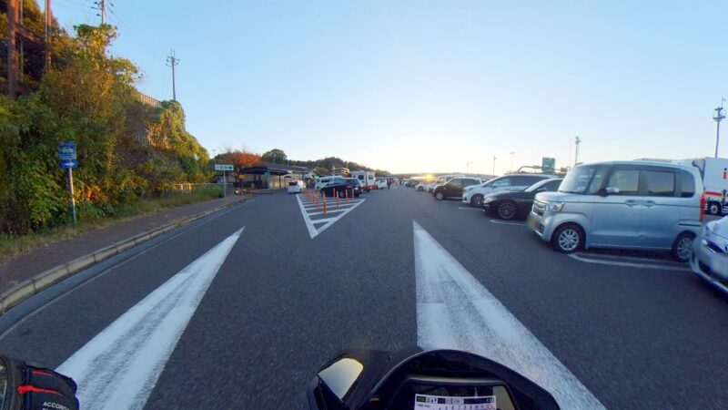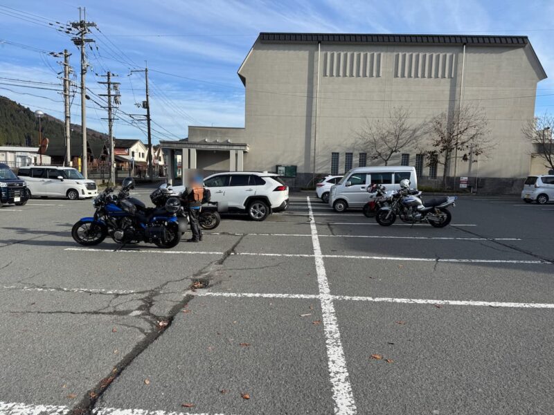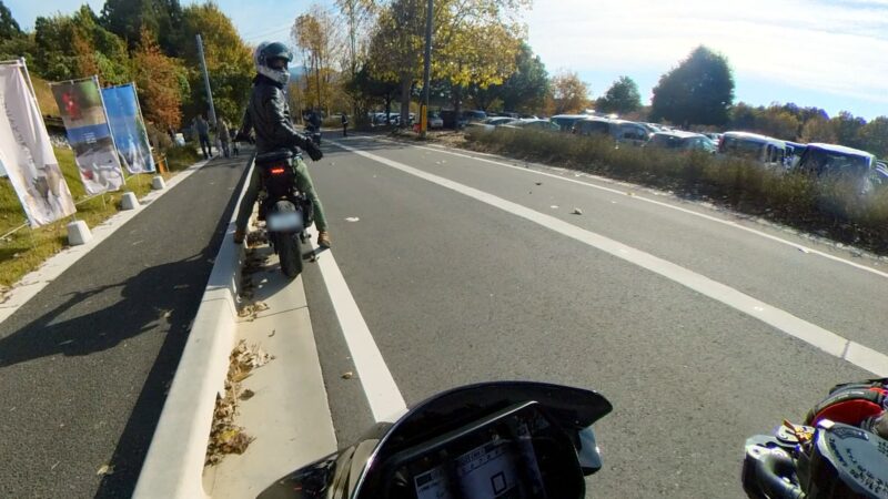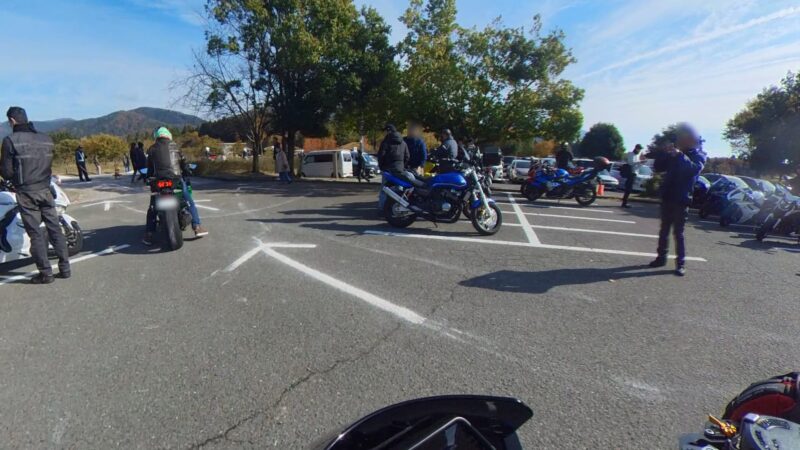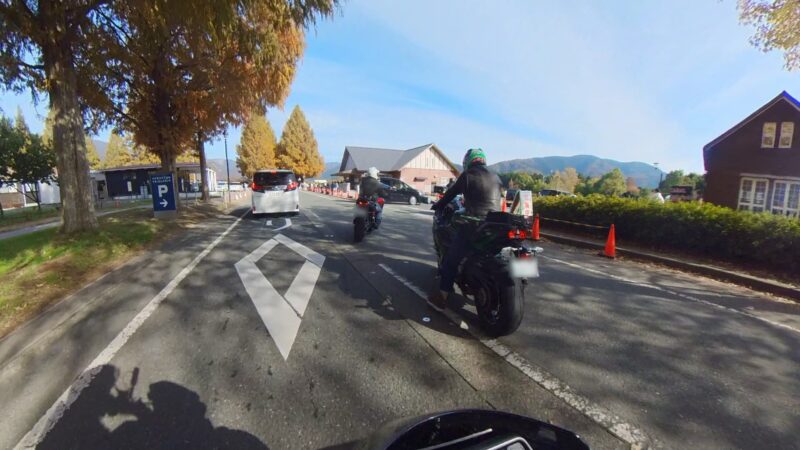 此処では、基本的にトイレ休憩だけです。日曜朝市などをしてましたが、スルーしました。バイク乗りの特徴か?バラけて停車してます。私は、整列して、タケちゃんのカワサキH2SXの隣に停車しました。15分ほどで出発しました。