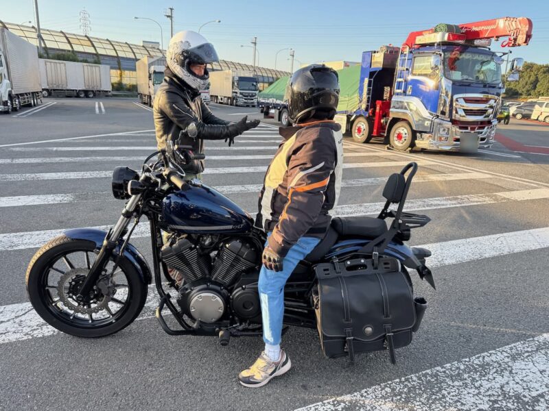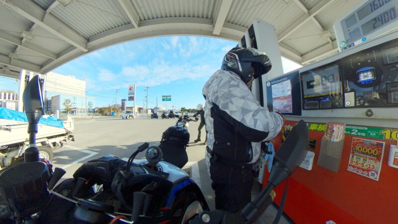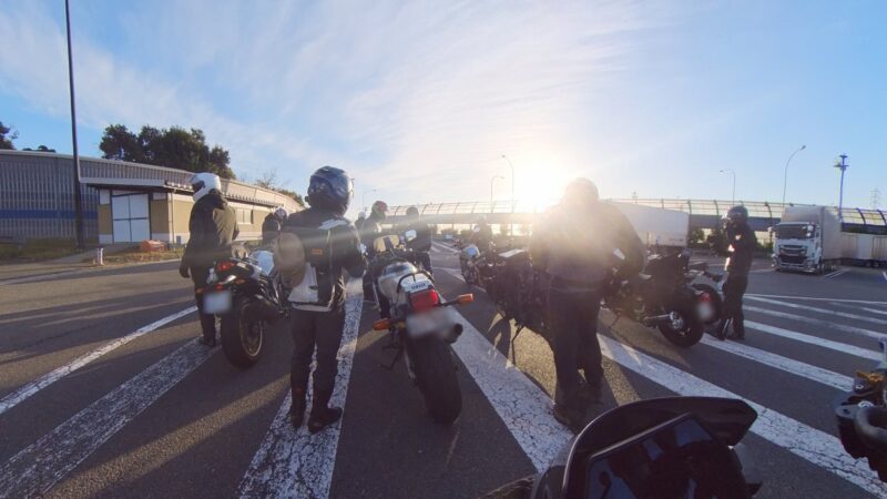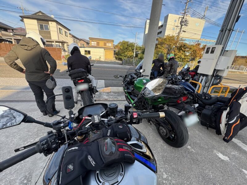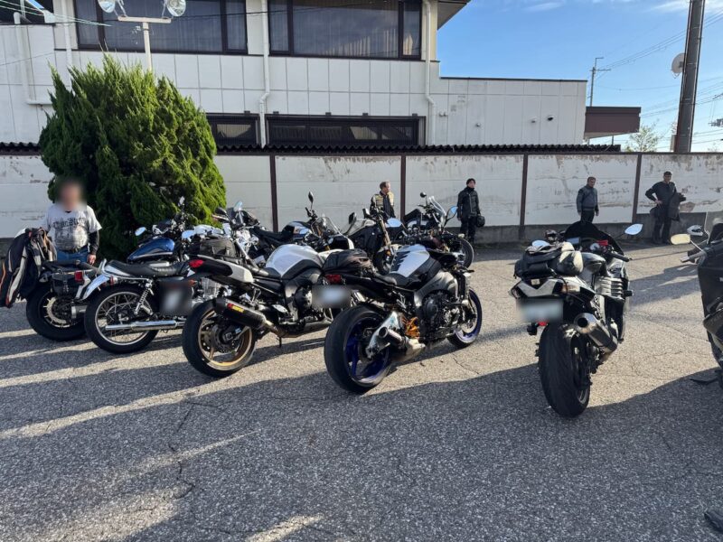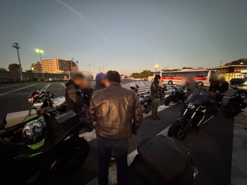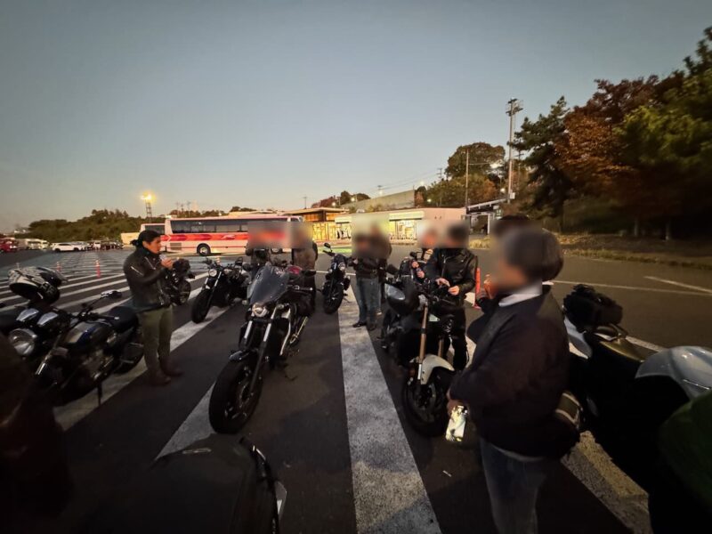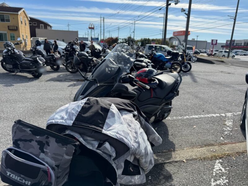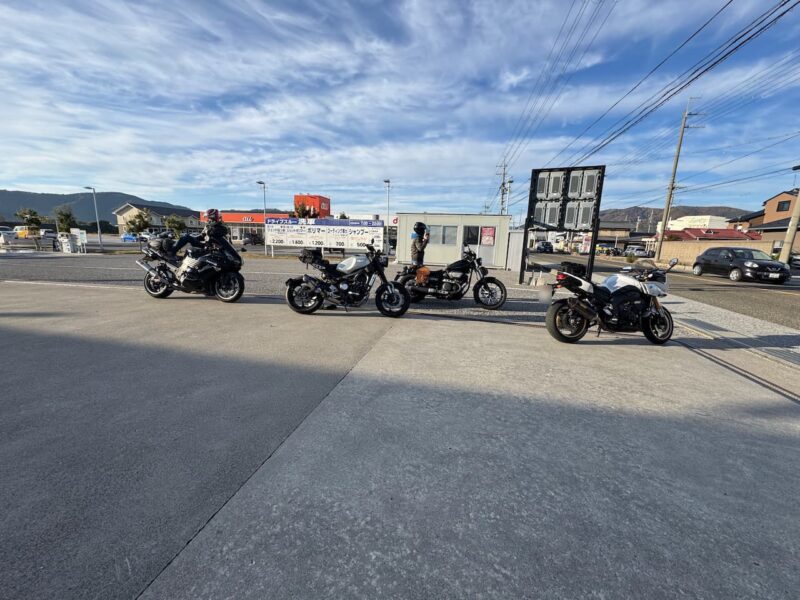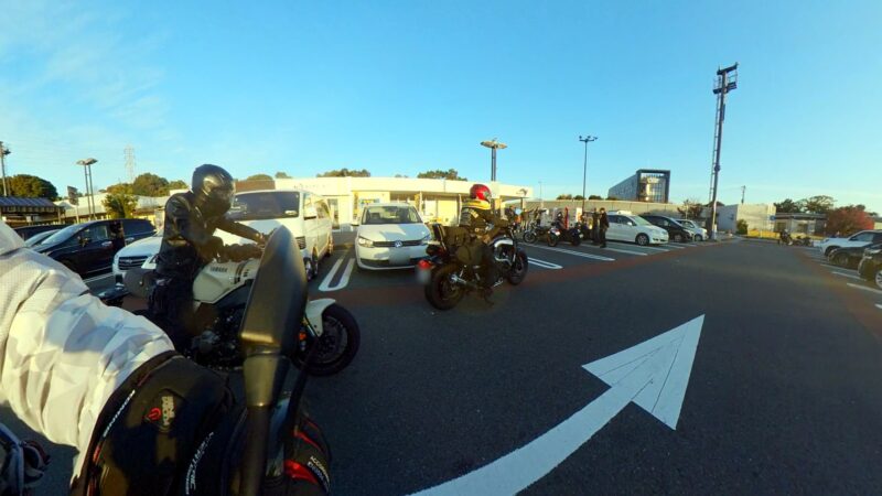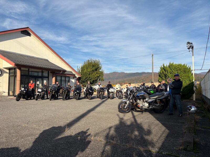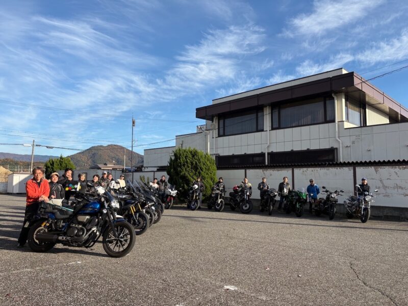 もうかなりの方が到着してました。W田店長に保険料を支払って、皆さんと待ちます。7時半前に円陣を組んで、超簡単なMeetingが有りました。その時にバイク友の先輩のスーさんが登場です。タケちゃんに一緒に行こうと誘われましたが、付いていけないから・・・と断ってました。現在、中国?ホンダの155?に乗ってます。そして、Meetingにひとり遅れた、BOLTのT村さん、W田店長から個別に指示を受けてます。