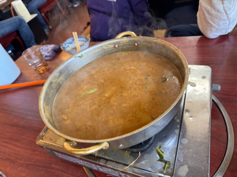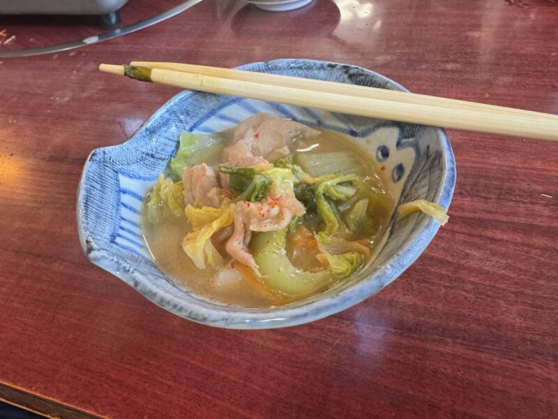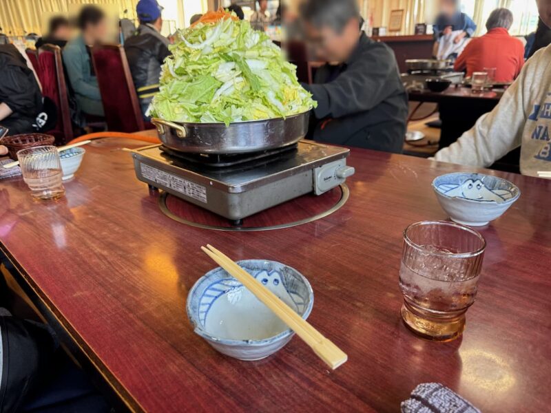 席に着いたのは、13時半前でした。お店は、6人席に4人で座りました。タケちゃん(カワサキ)、黒XSR900さん(元TRX850)、白FZ1 FAZER?さんと同席になりました。14時閉店なので、追加注文無しと言われて、とりやさいみそ鍋(鶏肉)と麺を4人前頼みました。結局、14時20分頃まで食べてました。昼食、少食の私には十分過ぎる量でした。10年ほど前に来た事が有ります。
