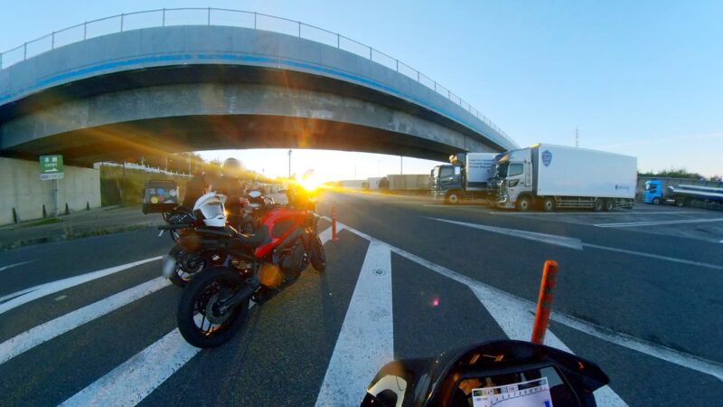 早朝の3時頃に目覚めて、寝れずに起きて、朝食を食べたり準備をしました。6時にバイクの相棒のMT-10SPを駐車場に出しました。車の相棒のWRX STIの排気音の大きさは、ご近所さんに気を遣います。6時半前に出発準備が完了しました。