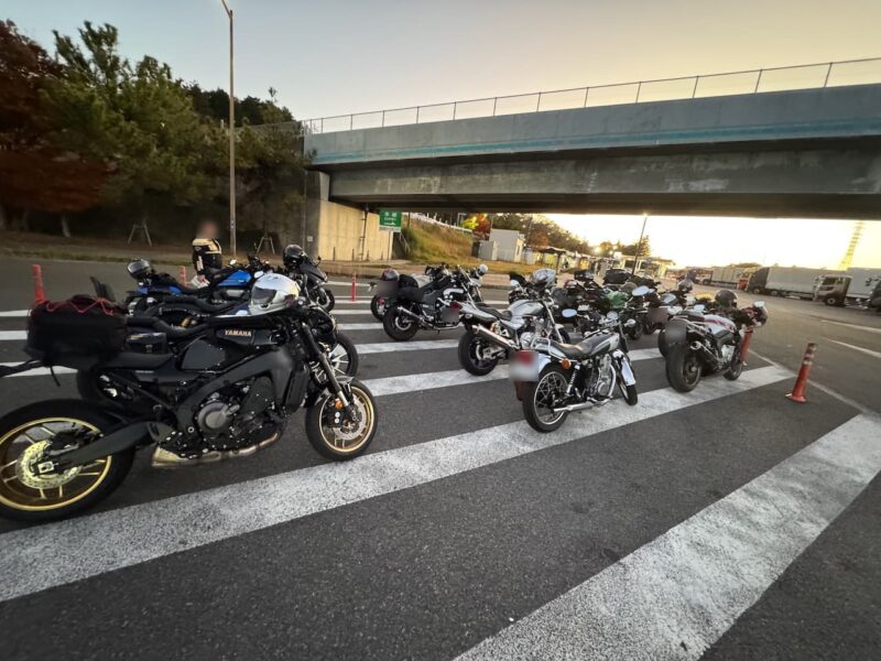 6時半に自宅を出発しました。いつもの出発点の向井田2の交差点を通過して、GSへ行ってガソリンを満タンにしました。そして、引っ返して、また、向井田2の交差点を通過しました。そして、交野北の入口から第二京阪へ乗りました。この入口は、ETC専用になってます。京田辺の料金所を通過しました。まだ、時間が早いせいか?道は空いてました。集合は、名神高速道路上り・桂川PAです。京滋バイバスを少し走って、名神の上りに入らないとイケません。以前、SSTRの時にボ〜としてて、名神高速道路下りに入ってしまって、高槻でUターンした経験が有ります。普段、このルートで名神に入る事は、ほとんど有りません。丁寧に看板を確認しながら名神の上り車線へ入りました。途中で、もう一度、吹田方面に行くルートが出て来て、混乱します。そして、桂川PAの看板が見えて来ました。桂川PAに入るとバイクが多いです。同じグループのV MaxとアイボリーXSRの親子の方が同時に到着しました。何処に停めようか?迷いました。いくつかのグループに分かれて停車してます。一番奥のブルーFZさんの後に停めました。7:10の到着です。